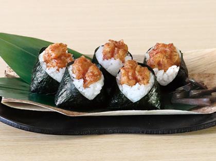 | 天むすは5個入り(1人前)でおよそご飯1膳分の分量です。 天然の竹の皮で包装しています。 竹の皮はおにぎりの余分な水分は吸収しつつ、程良くおにぎりを保湿する 優れた性質があります。 かさばらず、エコな包装です。 (※一部店舗では包装形態が異なります。) |